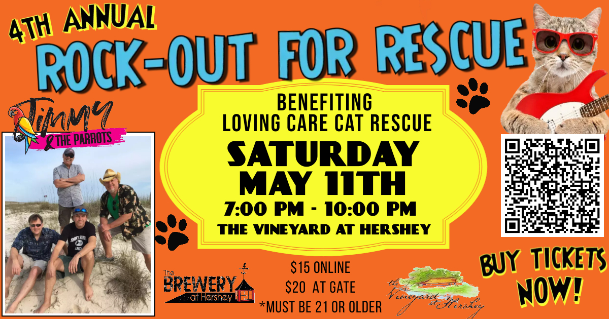 This popular event is scheduled for the evening of May 11, 2024 at the Vineyard at Hershey. Attendees enjoy live music, refreshments, raffles, friendship, prizes, and a variety of auction items. A fun evening to help raise funds for Loving Care Cat Rescue! Click here for tickets, or scan the QR code above.
